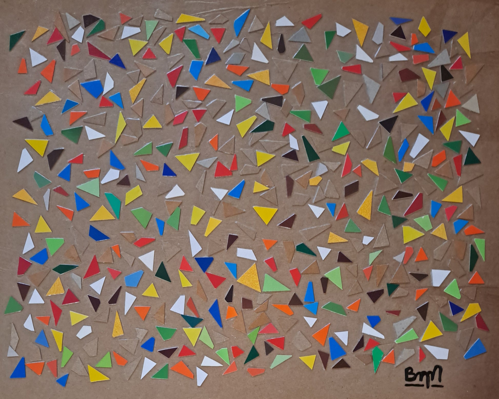 Collage on gessoed cardboard mounted on wood panel.