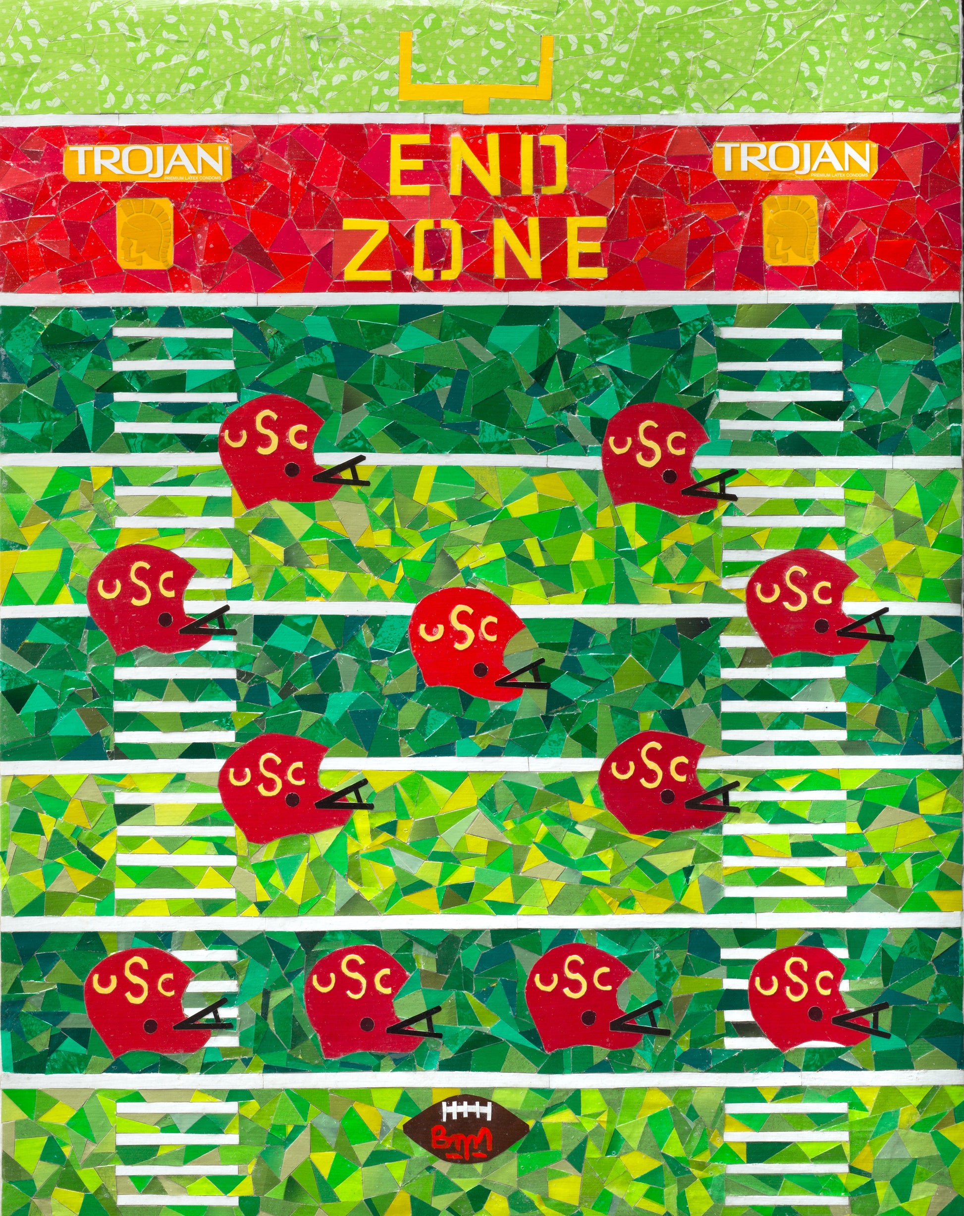 Mozage (mosaic/collage) on gessoed cardboard mounted on wood panel.
