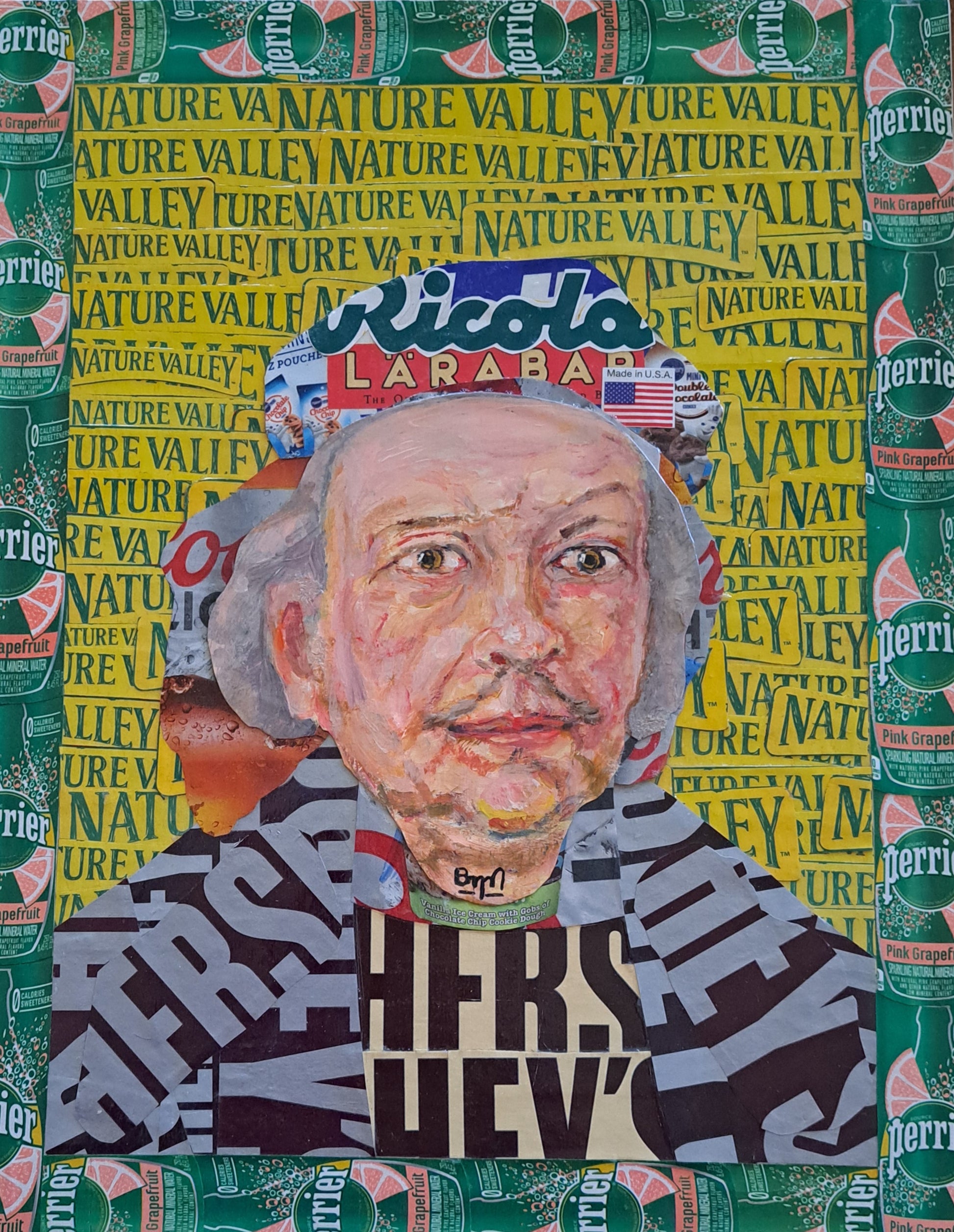 Collage and acrylic paint on gessoed wood panel.
